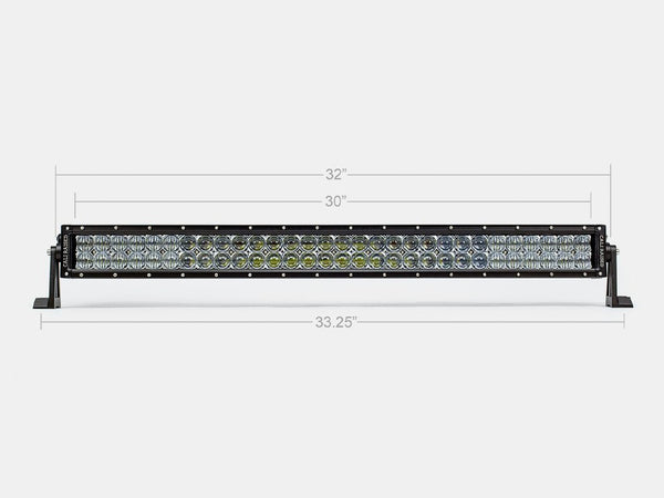 For the perfect mix of durability, capability, and affordability, look no further than this universal Cali Raised LED 32" dual-row 300W LED bar, putting out a massive 30,000 Lumens. Ignite the night with confidence rather than shying away from it. The 5D Optic design ensures a wide radius and superior lighting distance, no matter the trails you tackle. 60 premium OSRAM LEDs produce an unrivaled level of brightness you can rely on for 50,000+ Hrs. They're also extremely durable, thanks to the extruded aluminum housing, polycarbonate lenses, and IP rating of 68.