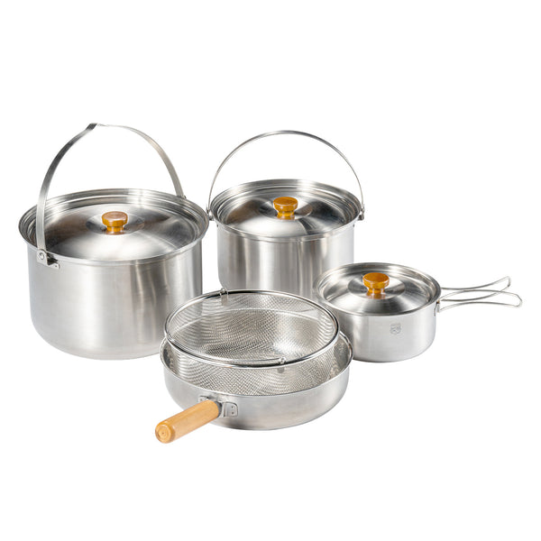 For the camper that enjoys eating well and cooking from scratch. This 9-piece cookset contains everything you need to feed a small crowd.