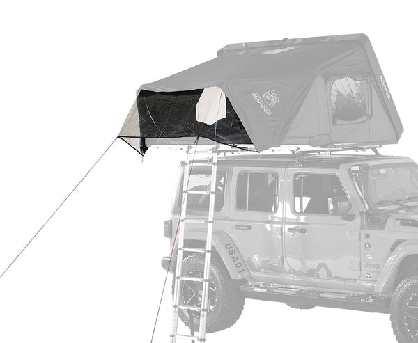 The vinyl Rain Canopy zips onto the main entrance of your tent for an extra layer of protection that covers the ladder and keeps it dry.